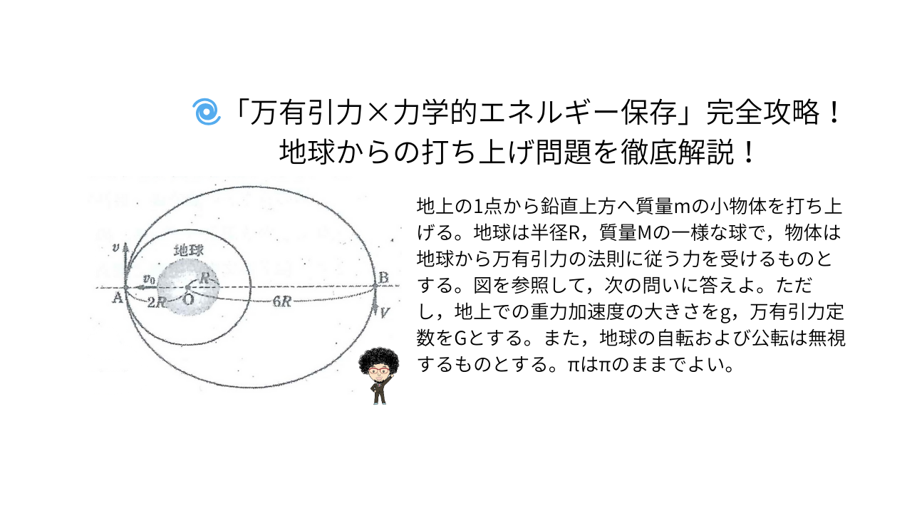 🌀「万有引力×力学的エネルギー保存」完全攻略!地球からの打ち上げ問題を徹底解説! 2026.01.12