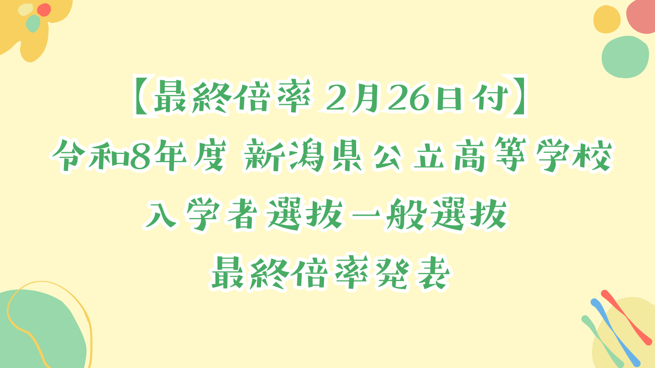 【最終倍率 2月26日付】令和8年度 新潟県公立高等学校 入学者選抜一般選抜 最終倍率発表 2026.02.26