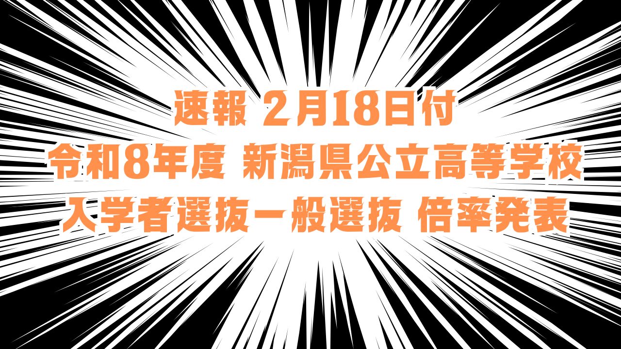 - 2026年2月18日information【速報 2月18日付】令和8年度 新潟県公立高等学校 入学者選抜一般選抜 倍率発表