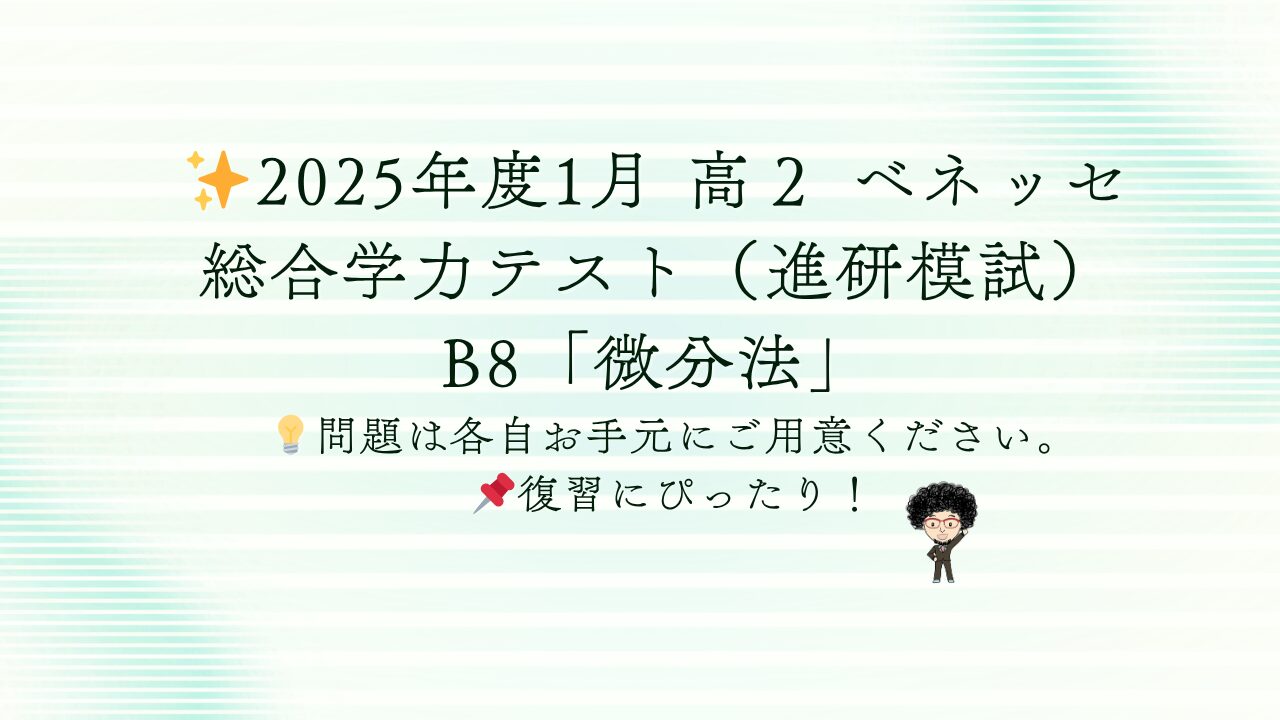- 2026年4月8日information✨2025年度1月 高2 ベネッセ総合学力テスト(進研模試)B8「微分法」