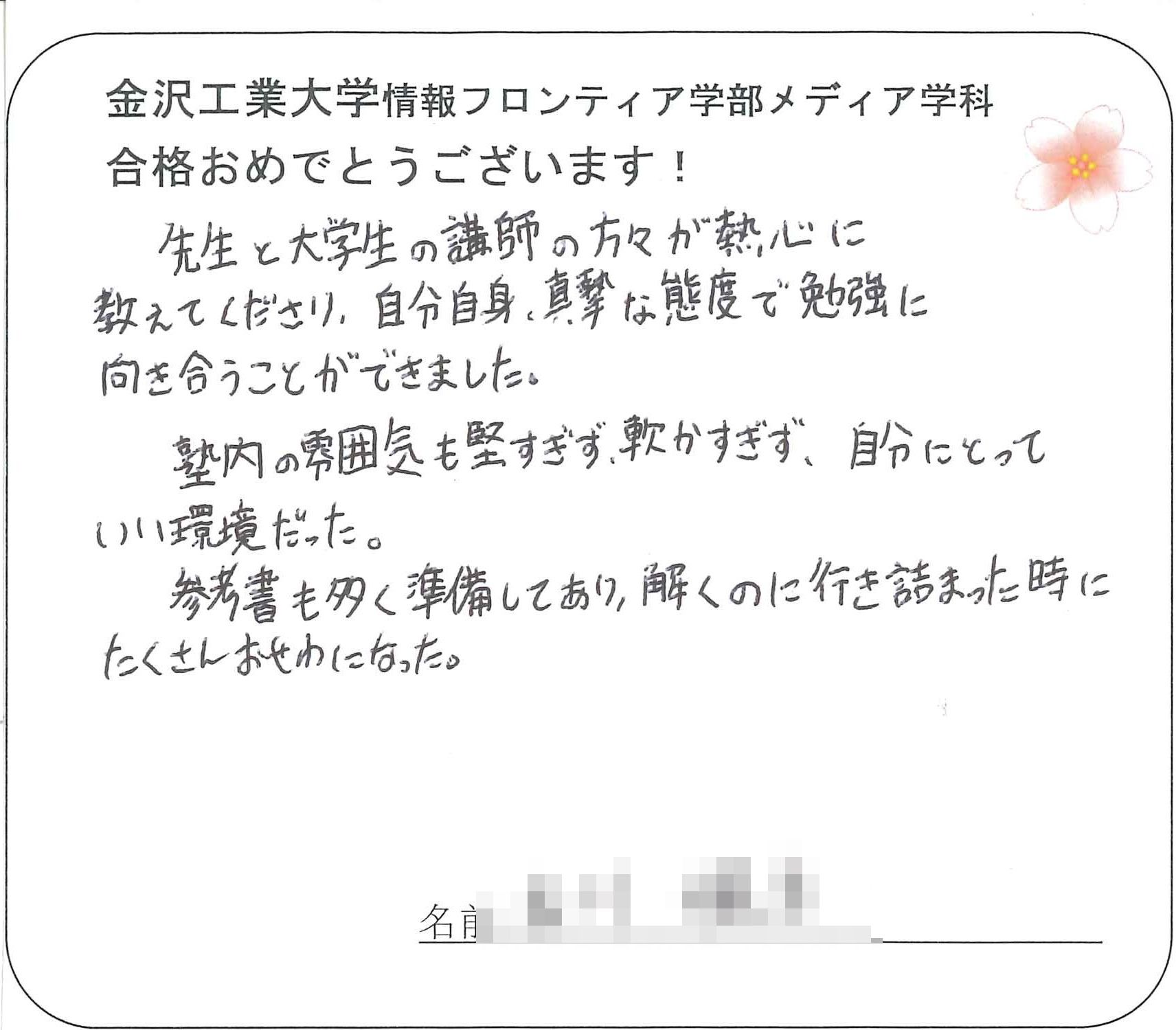 祝 金沢工業大学 情報フロンティア学部メディア学科