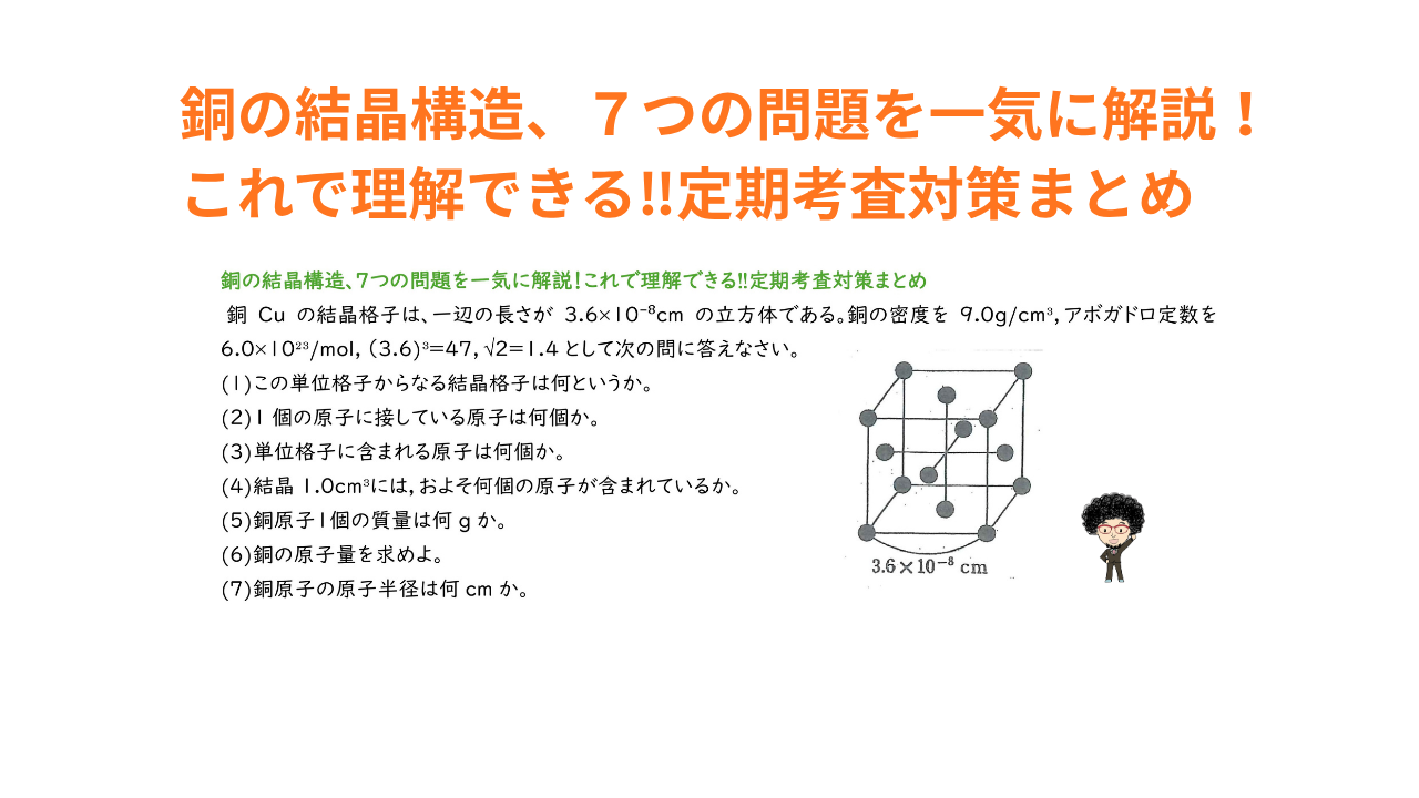 銅の結晶構造、7つの問題を一気に解説!これで理解できる‼定期考査対策まとめ