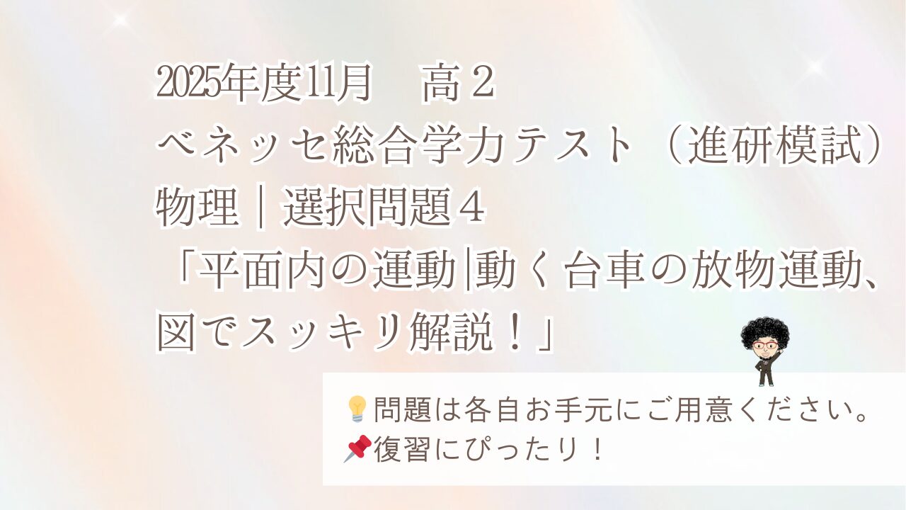 選択問題4「平面内の運動|動く台車の放物運動、図でスッキリ解説!」